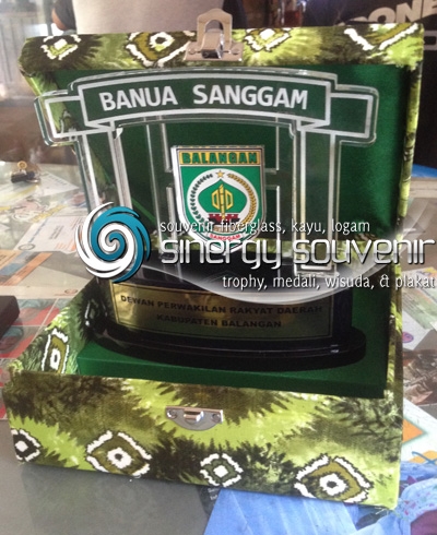 Plakat Cinderamata Banua Sanggam, Souvenir Kenang kenangan DPRD Kabupaten Balangan Kalsel, Kalimantan Selatan. plakat yang terbuat dari bahan fiberglass/ resin dengan plat logam mengkilap dari bahan kuningan dengan design simple tapi tetap terlihat mewah. model plakat yang juga cocok digunakan untuk kepentingan dan keperluan plakat kenang kenangan, plakat cinderamata perusahaan, souvenir promosi, souvenir perusahaan/corporate gift, piagam penghargaan / award,…