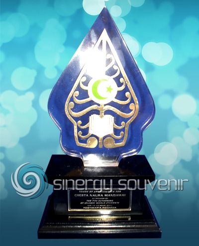 Cinderamata Wayang gunungan, Souvenir seminar Gathering of world student di Yogyakarta. plakat yang terbuat dari bahan fiberglass/ resin dengan plat logam mengkilap dari bahan kuningan dengan design simple tapi tetap terlihat mewah. model plakat yang juga cocok digunakan untuk kepentingan dan keperluan plakat kenang kenangan, plakat cinderamata perusahaan, souvenir promosi, souvenir perusahaan/corporate gift, piagam penghargaan / award, souvenir seminar, souvenir…