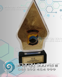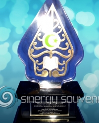 Plakat souvenir gunungan wayang, cinderamata dari Polda Jawa tengah, souvenir dengan model bentuk gunungan wayang kulit yang terbuat dari bahan resin bening tebal dengan plat motif wayang dengan logo warna polda jateng yang terbuat dari bahan logam kuningan gravir timbul yang dicetak cor didalamnya sehingga menjadikan souvenir plakat anda lebih mewah dan elegan. souvenir wayang yang mencirikan khas…